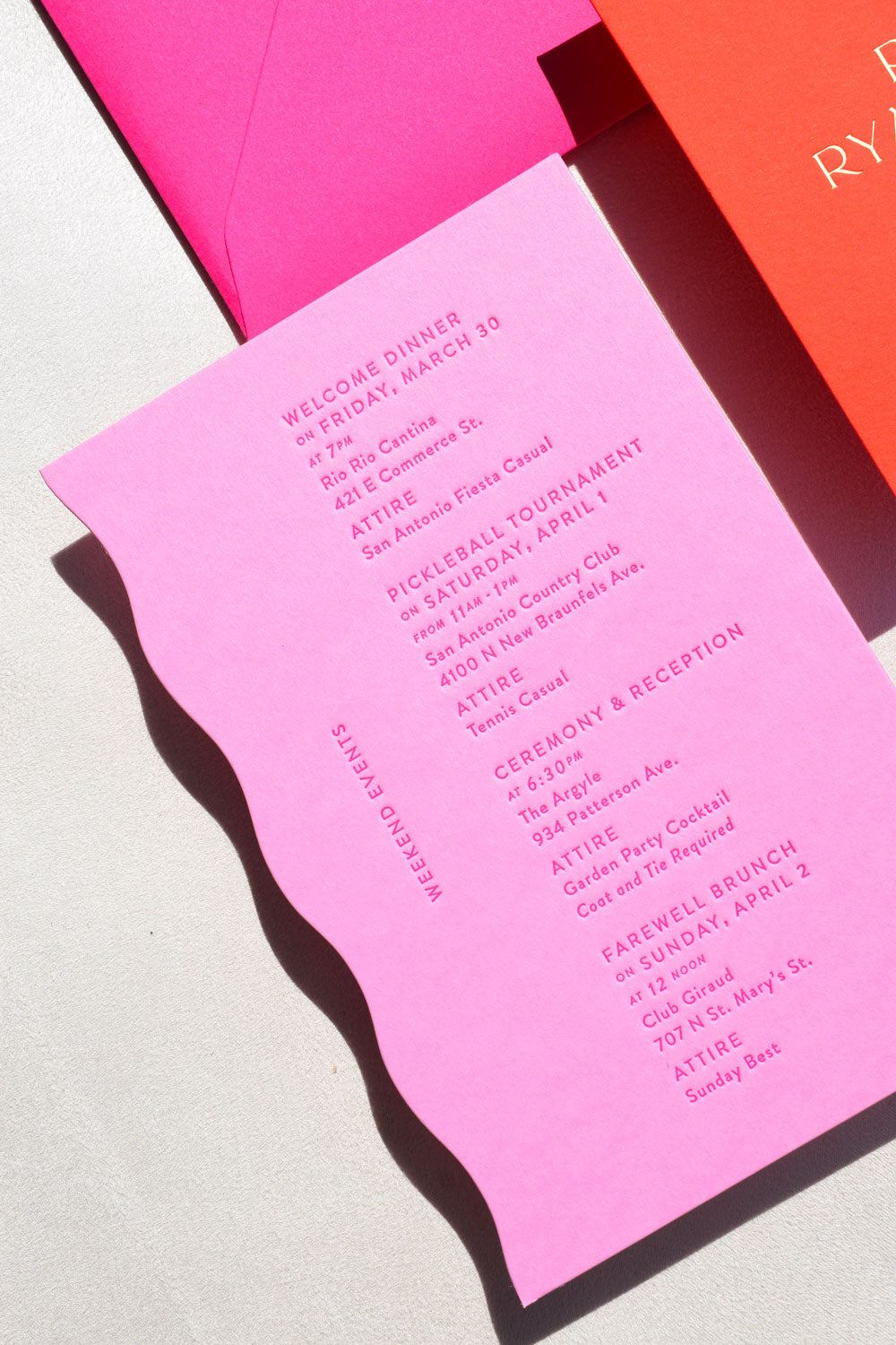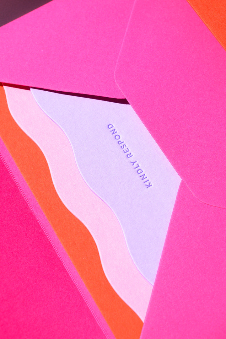 The Contemporary Collection is inspired by luxury fashion branding. It uses contemporary fonts and pairs beautifully with unexpected color palettes, creating an exciting and modern wedding invitation suite.